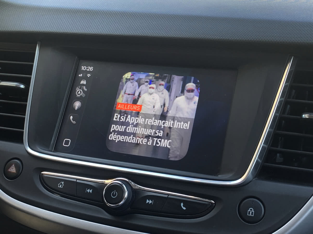Toutefois, toutes les voitures ne vont pas forcément gagner un widget supplémentaire et il reste impossible de choisir leur taille pour en mettre plus ou moins selon ses préférences. C’était déjà un point que nous regrettions lors de notre essai de « CarPlay 26 » sur un écran relativement petit d’Opel Crossland X, où un seul widget apparaissait — nous n’avons pas encore vérifié si iOS 26.2 change la donne pour ce modèle.