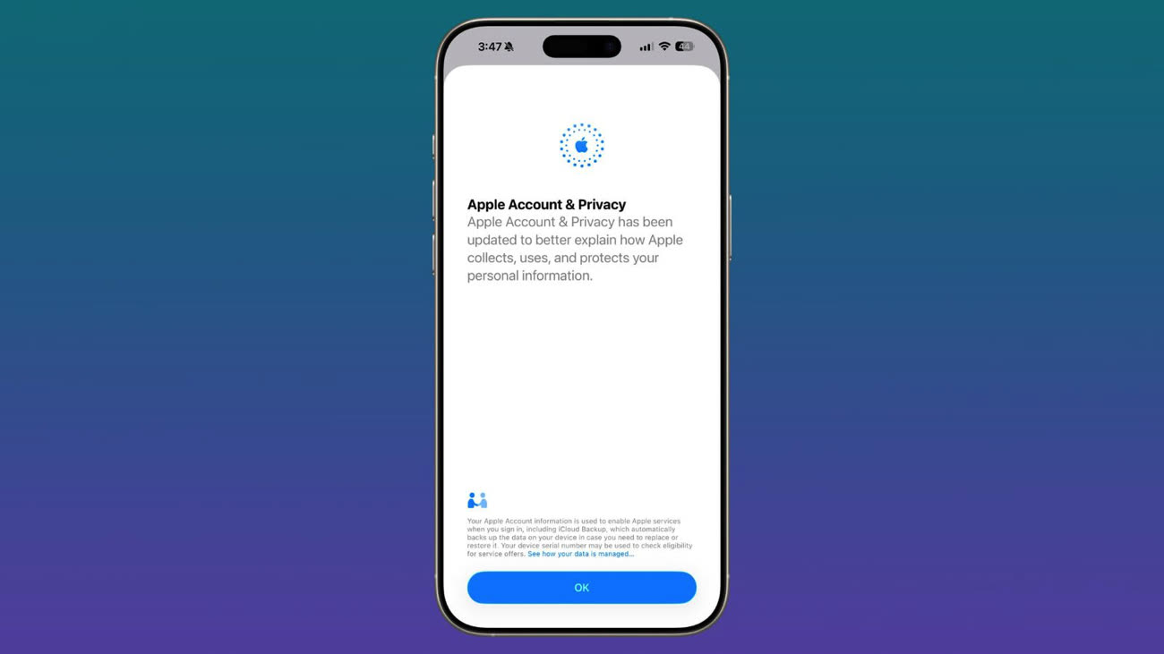 Lors de la première connexion à votre compte Apple après l’installation d’iOS 26.2, un message d’alerte s’affiche pour signaler qu’Apple a mis à jour les informations de confidentialité liées aux comptes Apple. L’entreprise y décrit plus clairement la manière dont vos données personnelles sont collectées et utilisées.
