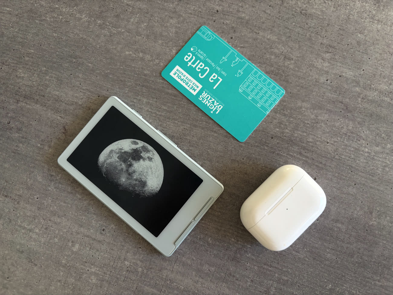 L’accessoire arrive livré avec un écran de protection ainsi que des anneaux magnétiques permettant de l’accrocher à des appareils n’ayant pas d’aimants. Dans la boîte, on trouve également un adaptateur microSD vers USB-A aux côtés d’une carte de 32 Go, ce qui sera largement suffisant pour stocker toute sa bibliothèque. On pourra sinon y glisser la sienne allant jusqu’à 512 Go.